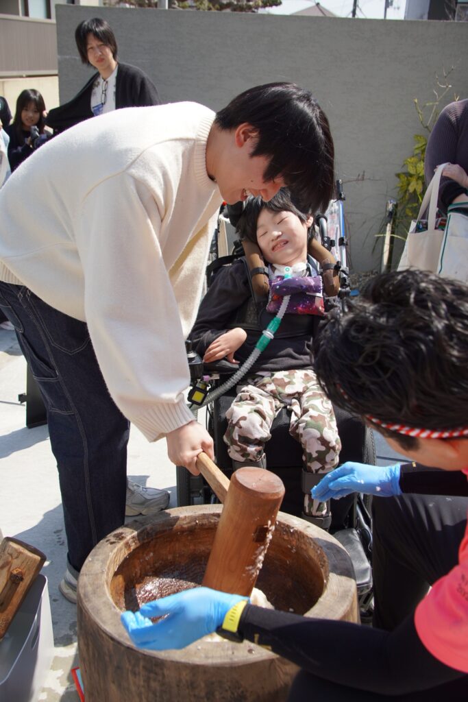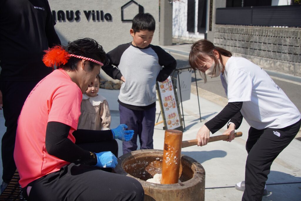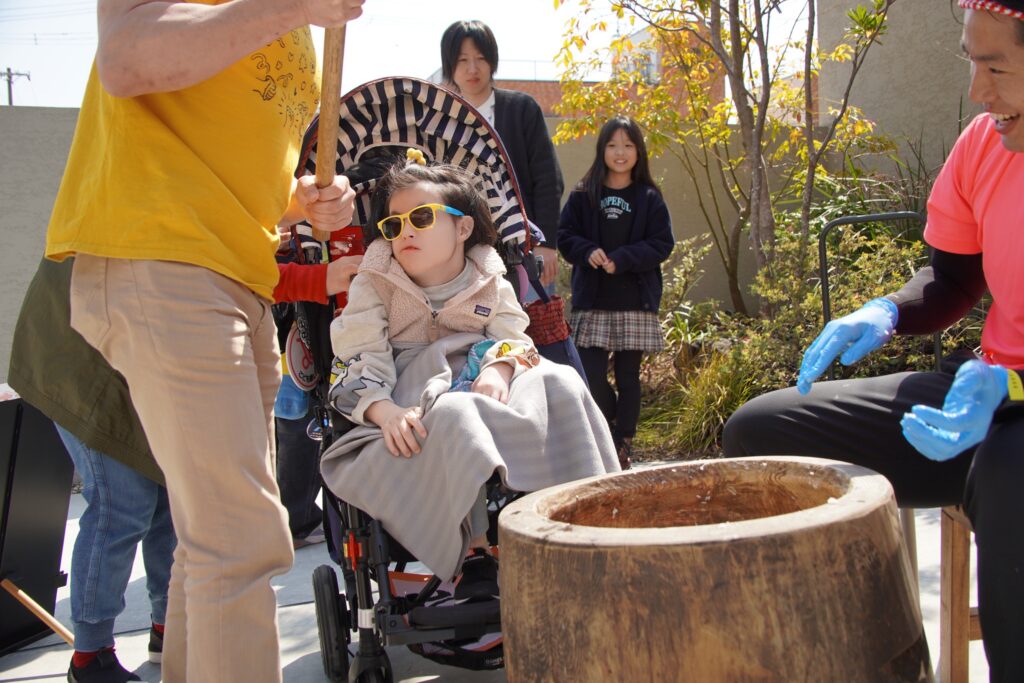 こどもたちは一生懸命に杵を持ち、力いっぱい挑戦✨