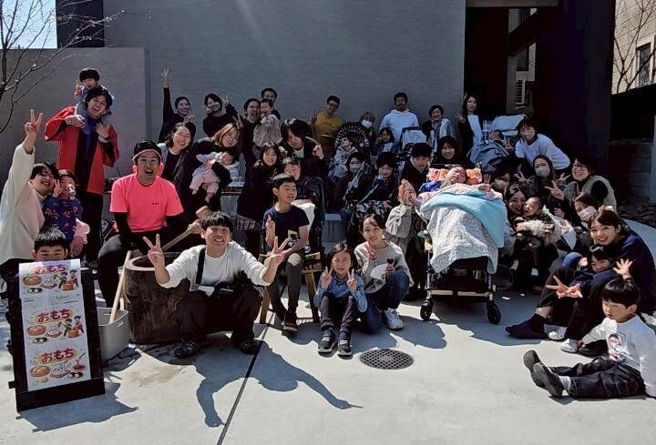 そして、利用者や子どもたちみんなで制作した大きな桜の絵の前で記念撮影🌸